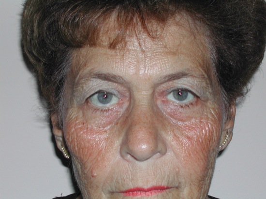 This patient is a woman in her sixties who was bothered by redundant upper eyelid skin.